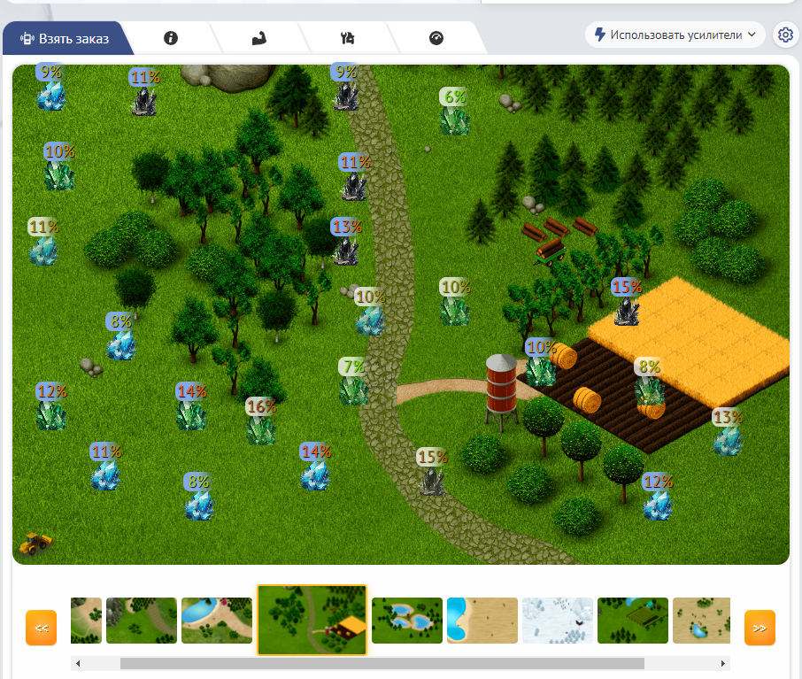 To take an order for mining ore with a bulldozer, open the page "Garage". Then switch to the "Bulldozers" tab and click the "Mine" button next to any of your bulldozers.