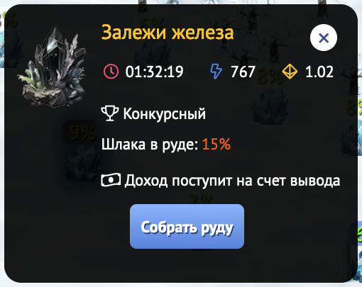 Конкурсная руда - средства поступают на Счет вывода. Повышенный доход в статистику конкурсов.