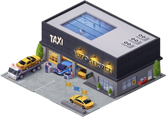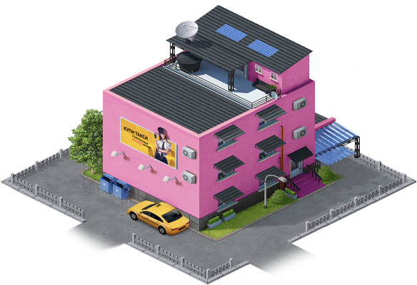 Personal buildings of all players and companies will be built in one virtual area of the city. A neighboring house of another player can easily appear next to your house. All businesses will now also be represented by buildings on the virtual map of Taxi-Polis. To start a new business, you will need to build the appropriate building.