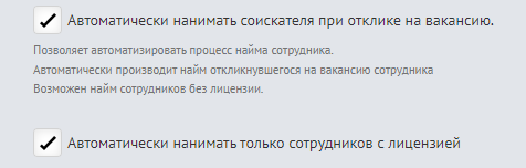 There, on the vacancy editing page, you can set up automatic hiring of applicants.
