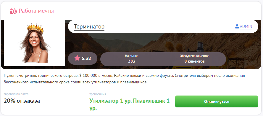 Если активных вакансий нет, попробуйте договориться о работе с владельцами Утилизационных компаний в личных сообщениях. Либо откройте собственную Утилизационную компанию, и заработайте на этом в десятки раз больше!