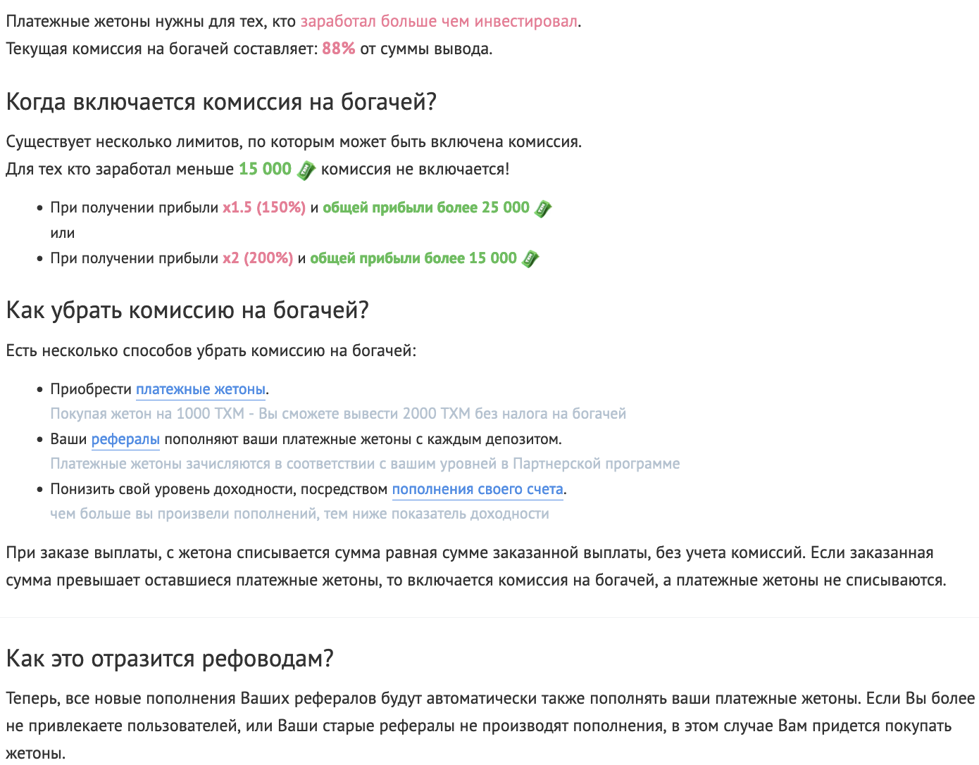 For those who have earned double their investments, a special wealthy commission of 88% of the withdrawal amount is applied.